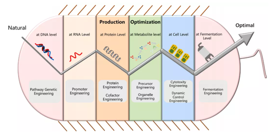 在国家战略性技术开发领域,普利制药积极建设以合成生物学为核心的研发平台,一方面以工业微生物为底盘细胞,推进以酶工程技术平台为依托的生物催化项目和以基因工程技术平台为依托的代谢改造项目的产业化开发,目前已有数个在研项目具备了产业化放大条件,并积极开拓其他高附加值产品的生物制造。